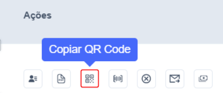 A função Copiar QR Code permite copiar o código para pagamento via Pix diretamente para a área de transferência.